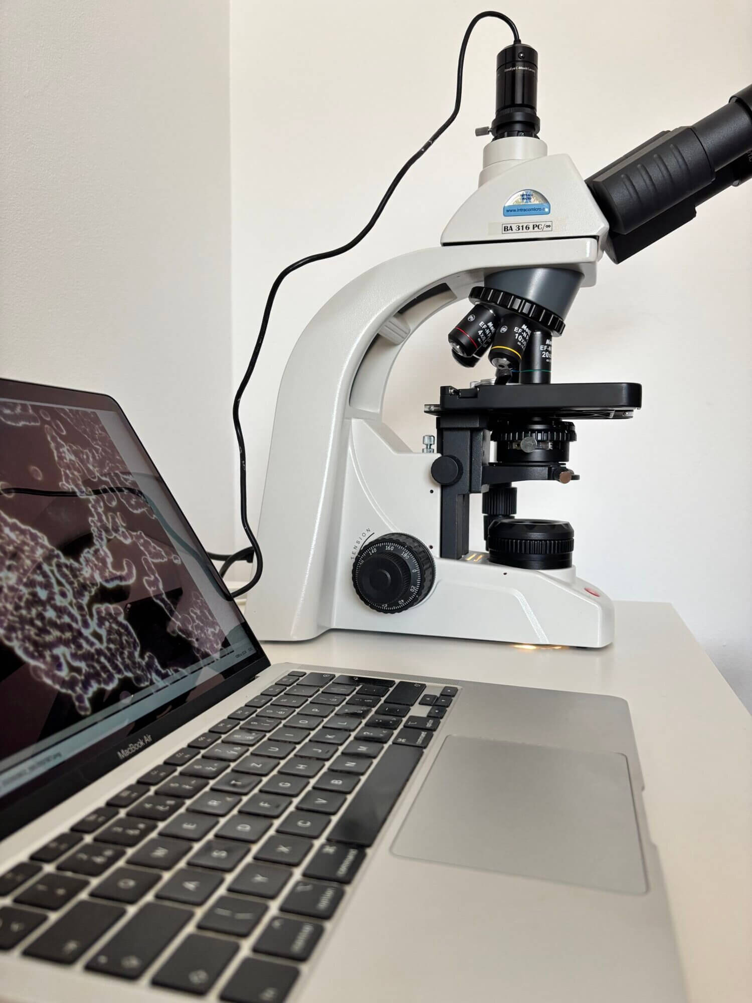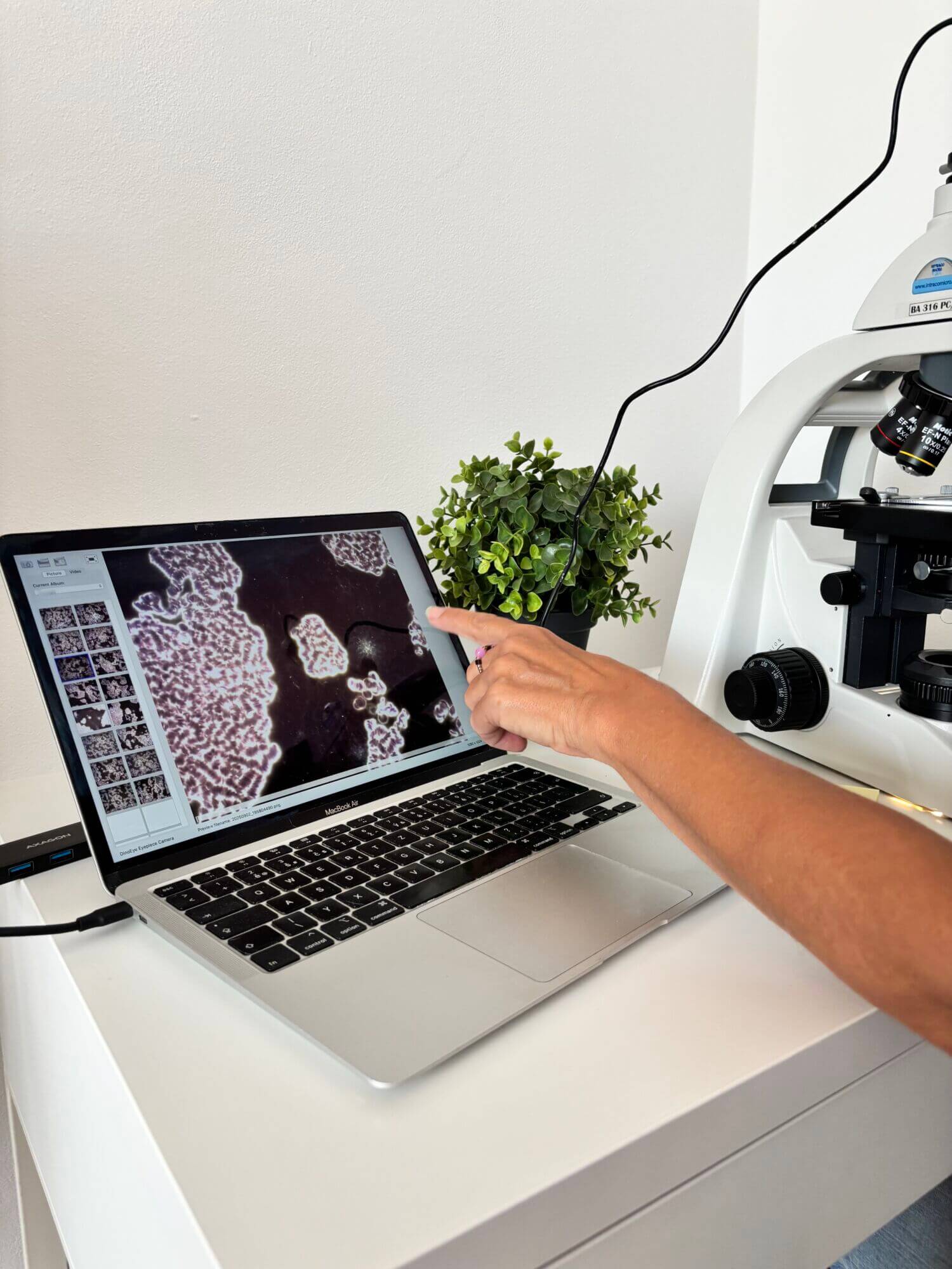 - Nejdříve společně pod mikroskopem prozkoumáme vaši kapku krve. Vše uvidíte na monitoru počítače a také můžete kdykoliv nahlédnout přímo do mikroskopu.